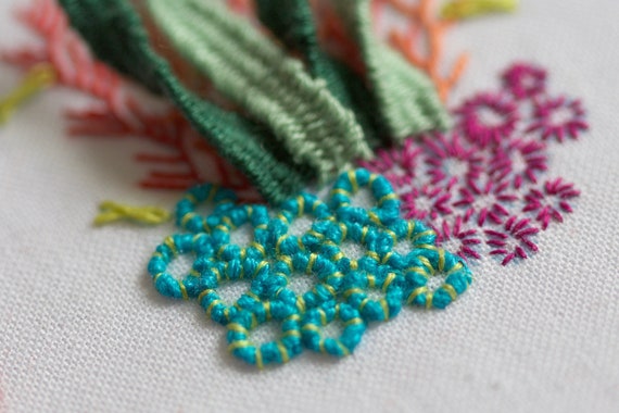 Coral Reef Embroidery Stitch Sampler Etsy Canada